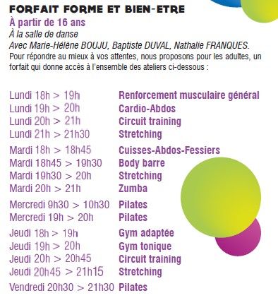 Modification d'horaires Forfait Forme et Bien-être